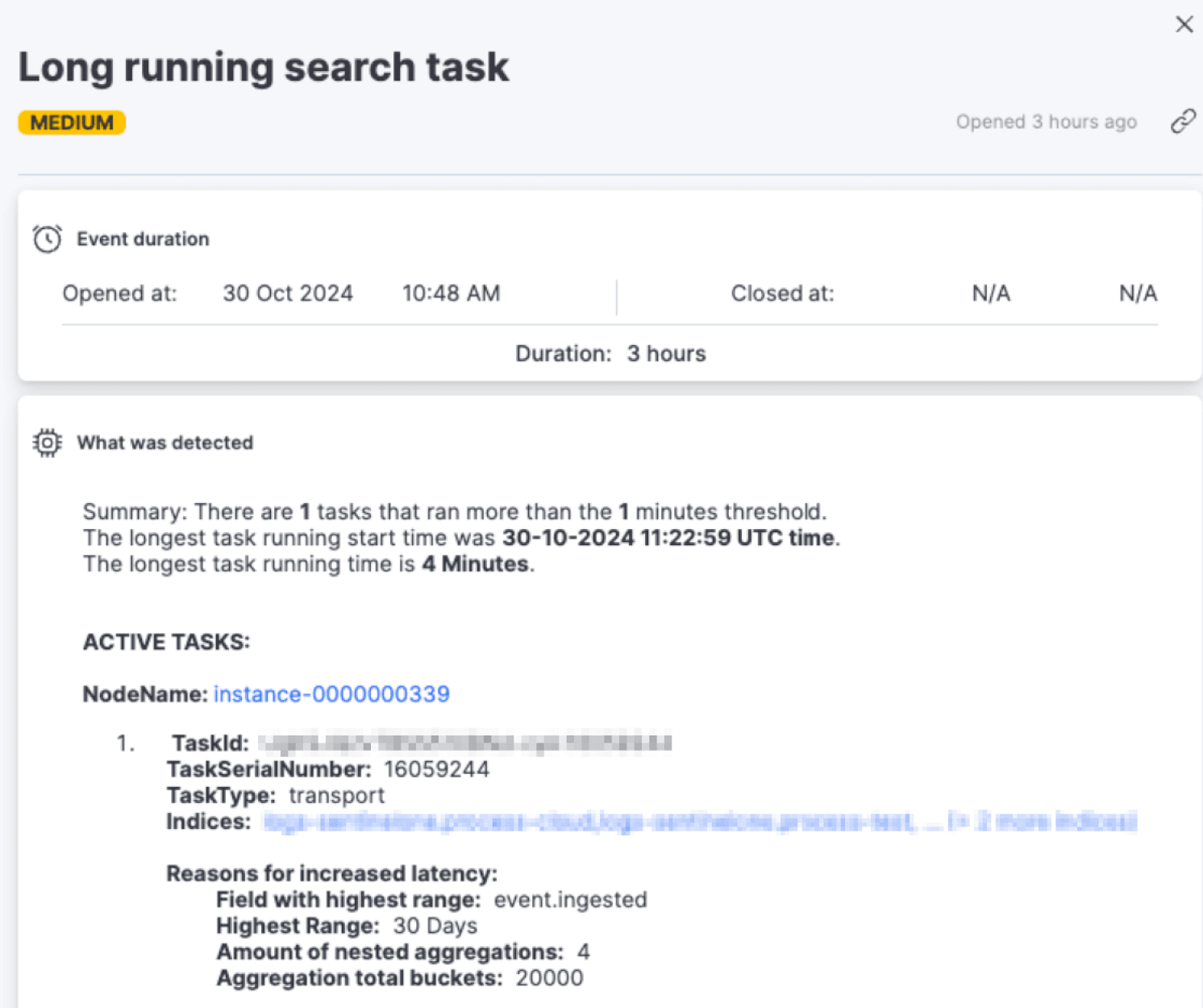 AutoOps monitors the Task Management API and flags long running search tasks providing an easy way to detect long running search queries and optimize them.