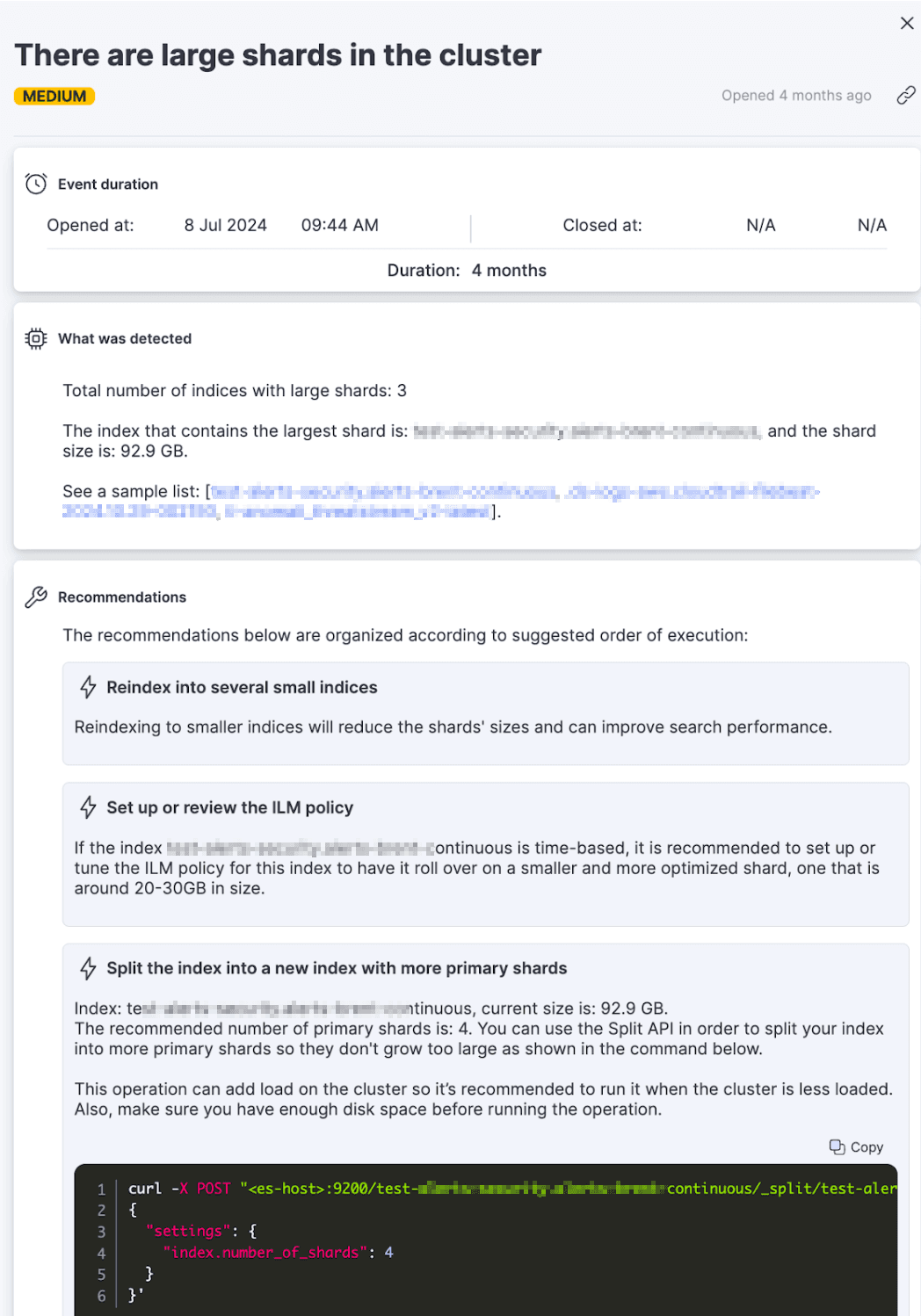 The team follows AutoOps’ recommendation to change the shards sizes, improving the dashboard’s responsiveness and cluster stability.