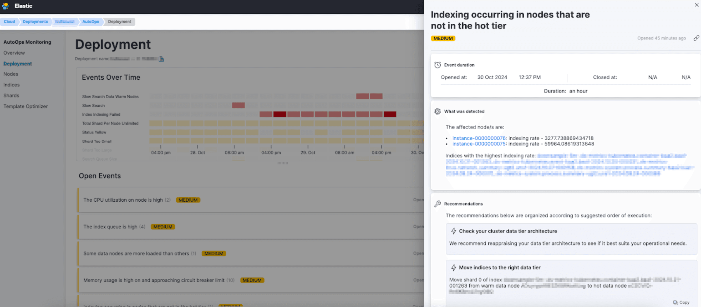 AutoOps detects that indexing occurred in the hot tier