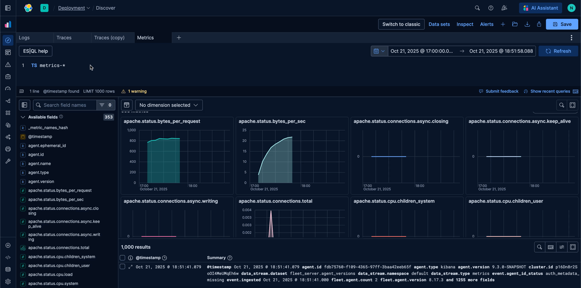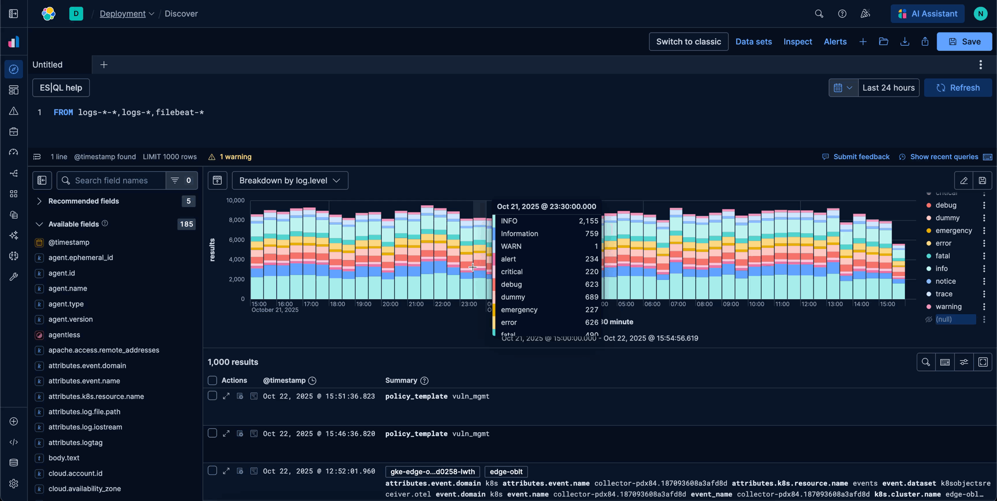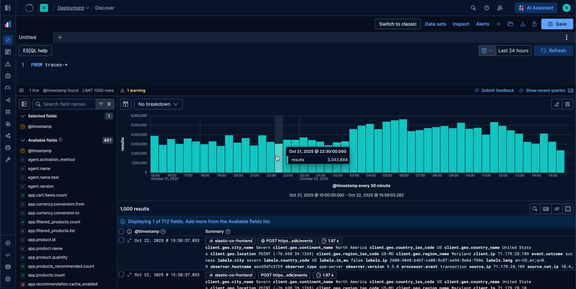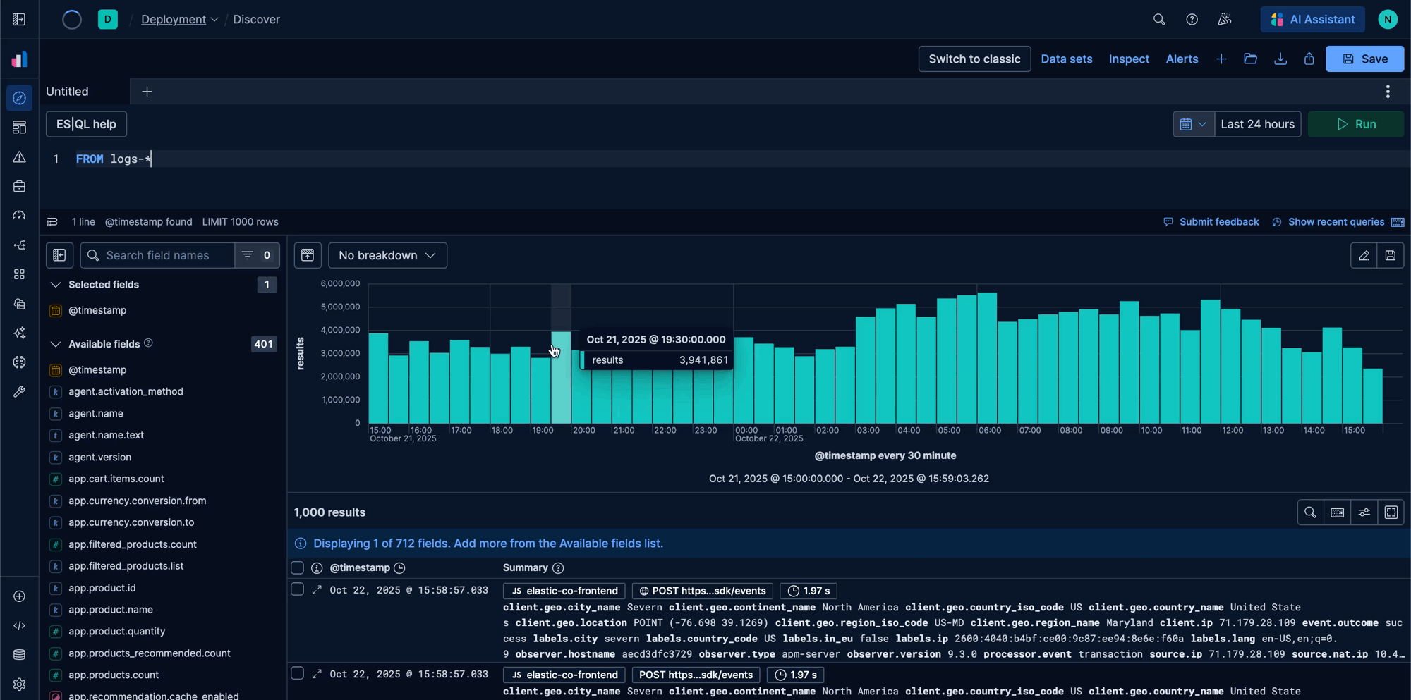 Today, that vision is a reality. We have fundamentally evolved Discover from an efficient yet generic exploration tool into a context-aware data exploration tool that adapts to your workflow. Coupled with Elasticsearch Query Language (ES|QL), now generally available within the interface, Discover is transforming how you interact with your data.