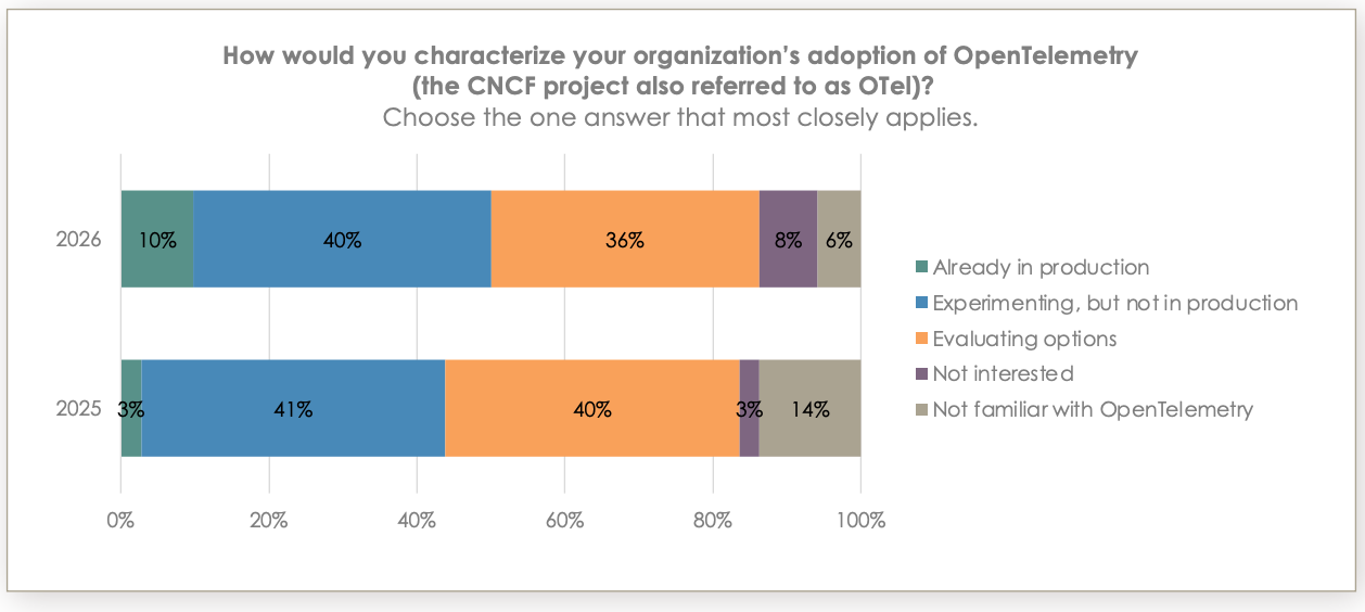 Standardizing on OpenTelemetry (OTel): Production usage triples to 10%