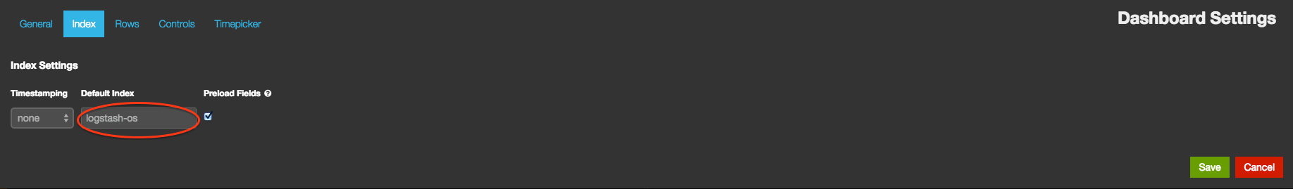 And point it towards the index 'logstash-os' where we are storing IPTables events (by default '_all' indexes are set to be queried)
