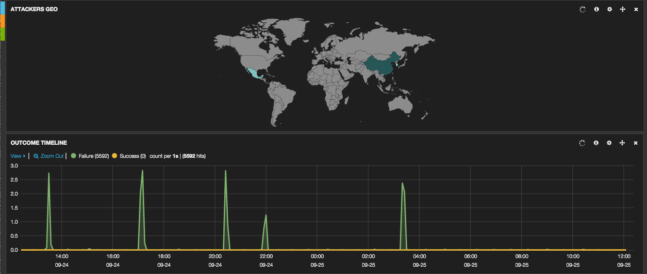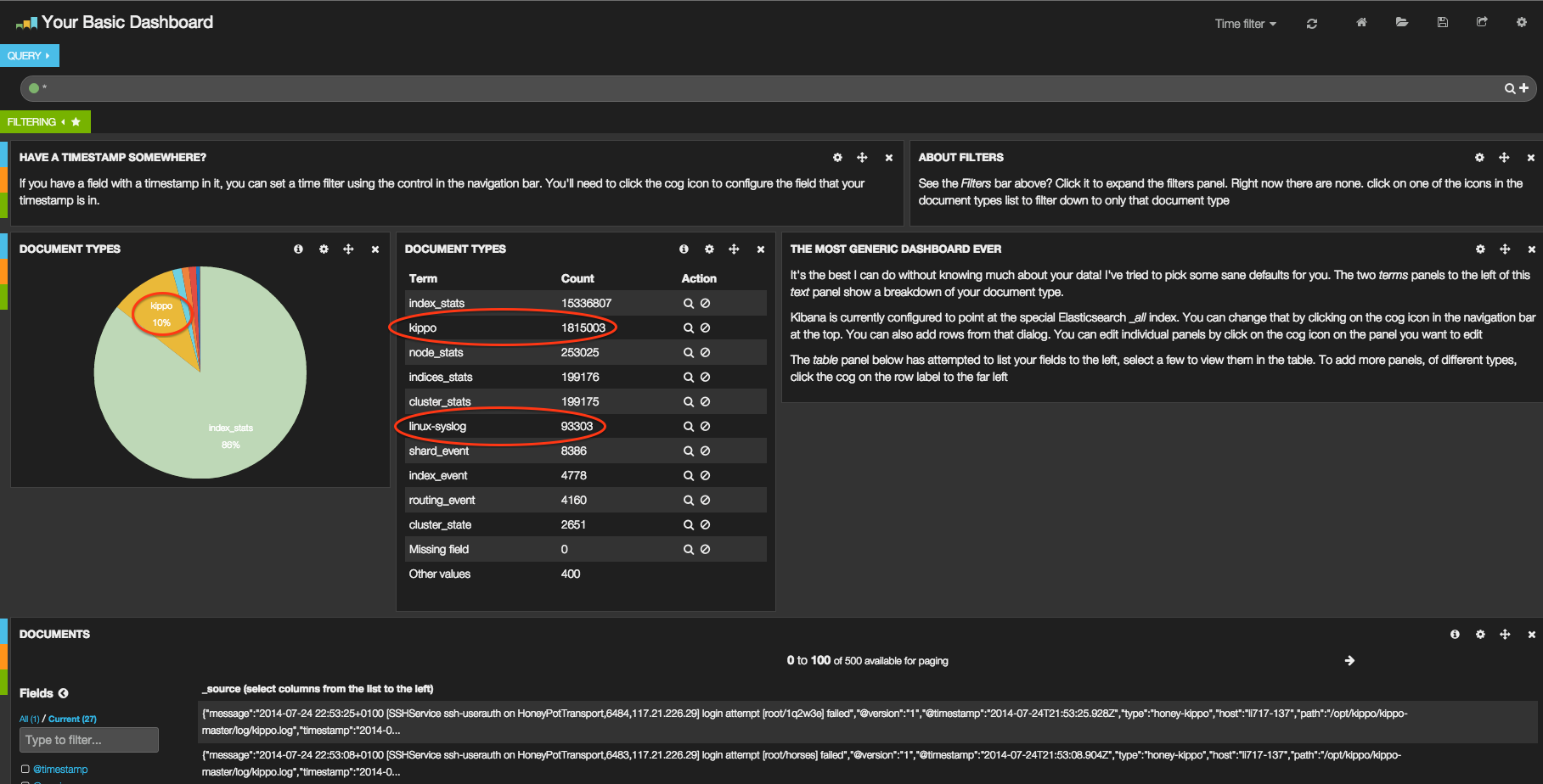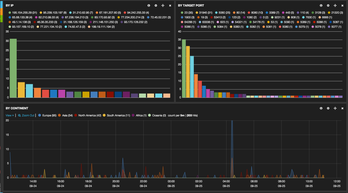 We have now left this running for a while to allow the bad guys to feed us with some events and make our dashboards nice and pretty.