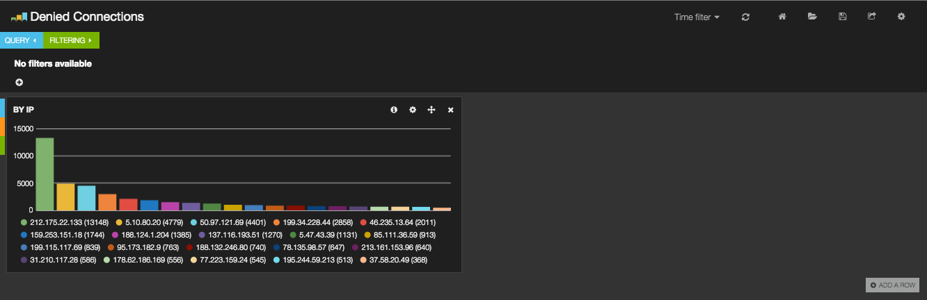 Then let's add a row to our empty 'Denied Connections' dashboard.