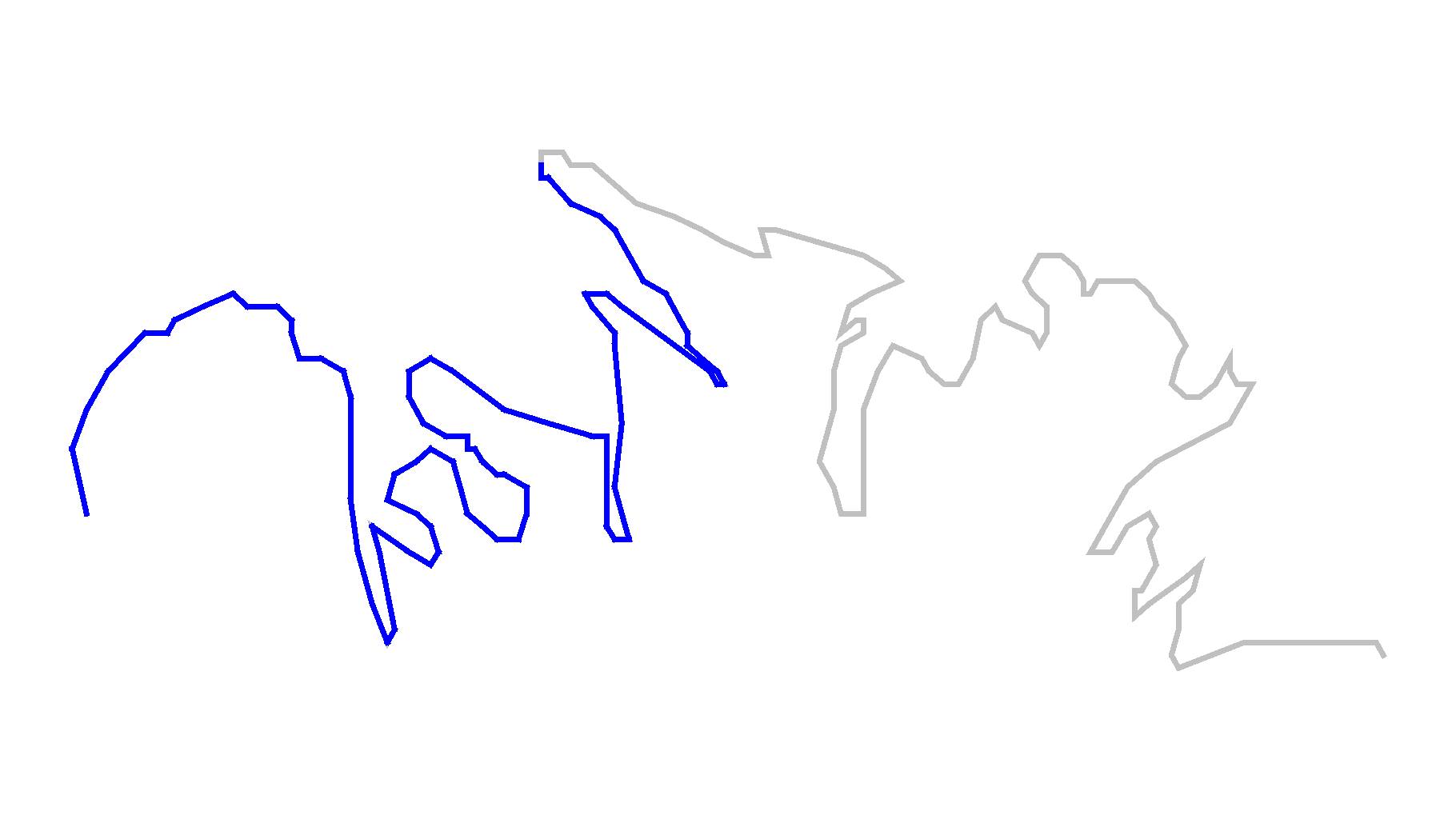 The grey line is the entire geometry of 209 points, while the blue line is the first 100 points, a very different geometry than the original.