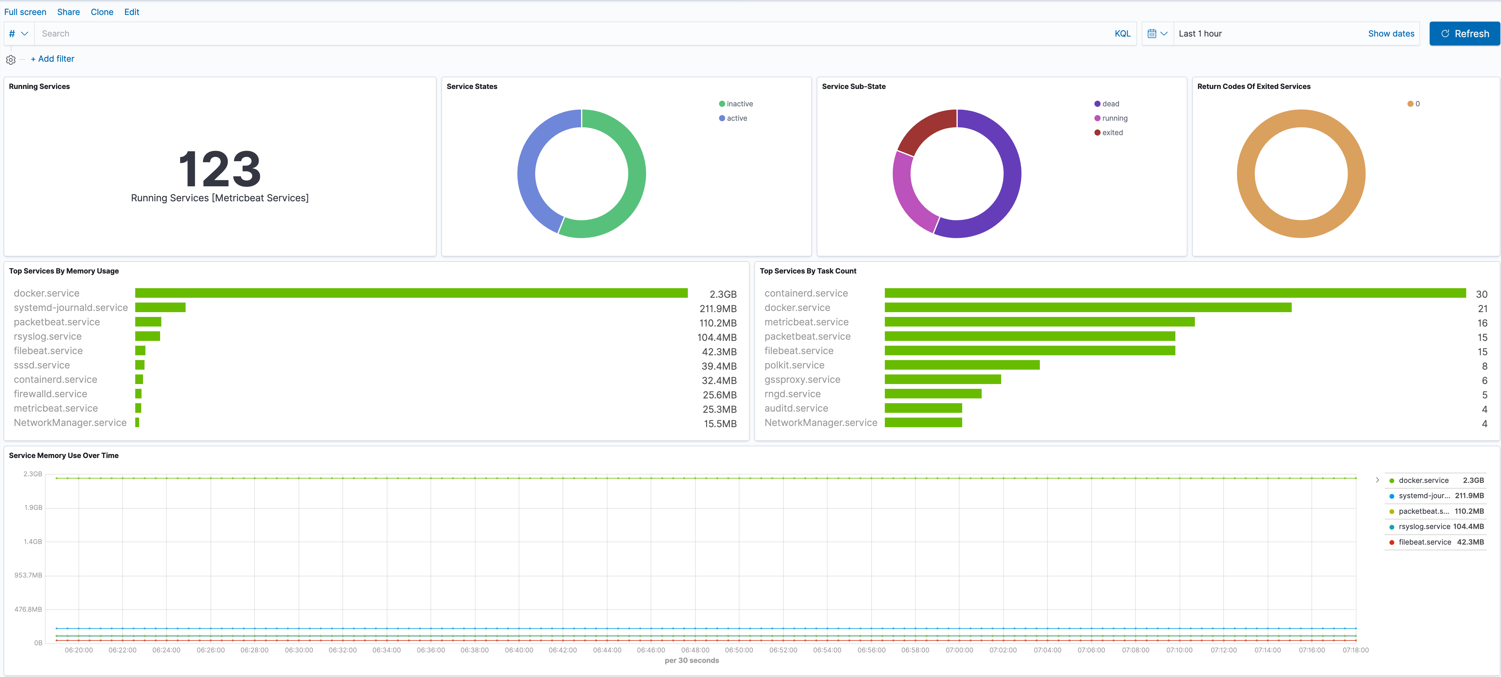 service.state_filter - A list of service states to filter by. This can be any of the states or sub-states known to systemd. service.pattern_filter - A list of glob patterns to filter service names by. This is an "or" filter, and will report any systemd unit that matches at least one filter pattern.