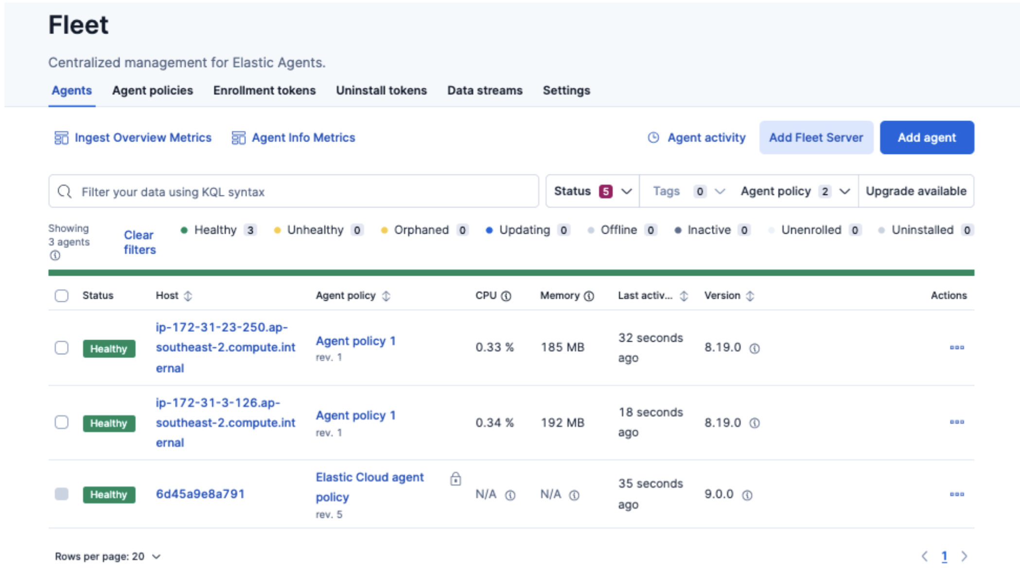 2. To check if your Elastic Agent is enrolled in Fleet, go to Management → Fleet → Agents.