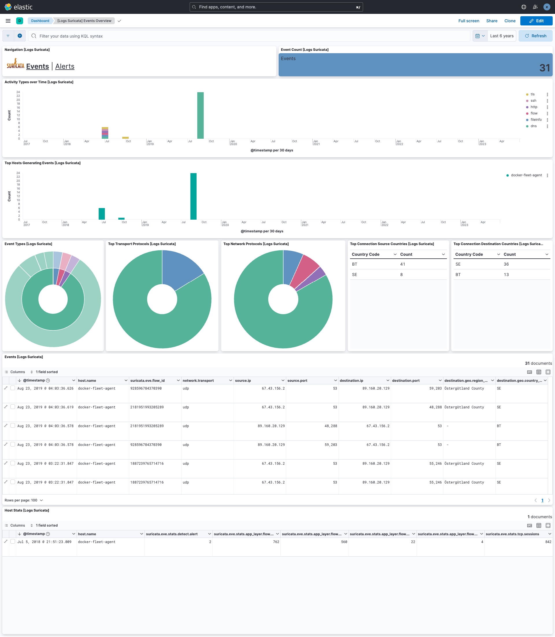 This integration is for Suricata. It reads the EVE JSON output file. The EVE output writes alerts, anomalies, metadata, file info and protocol specific records as JSON.