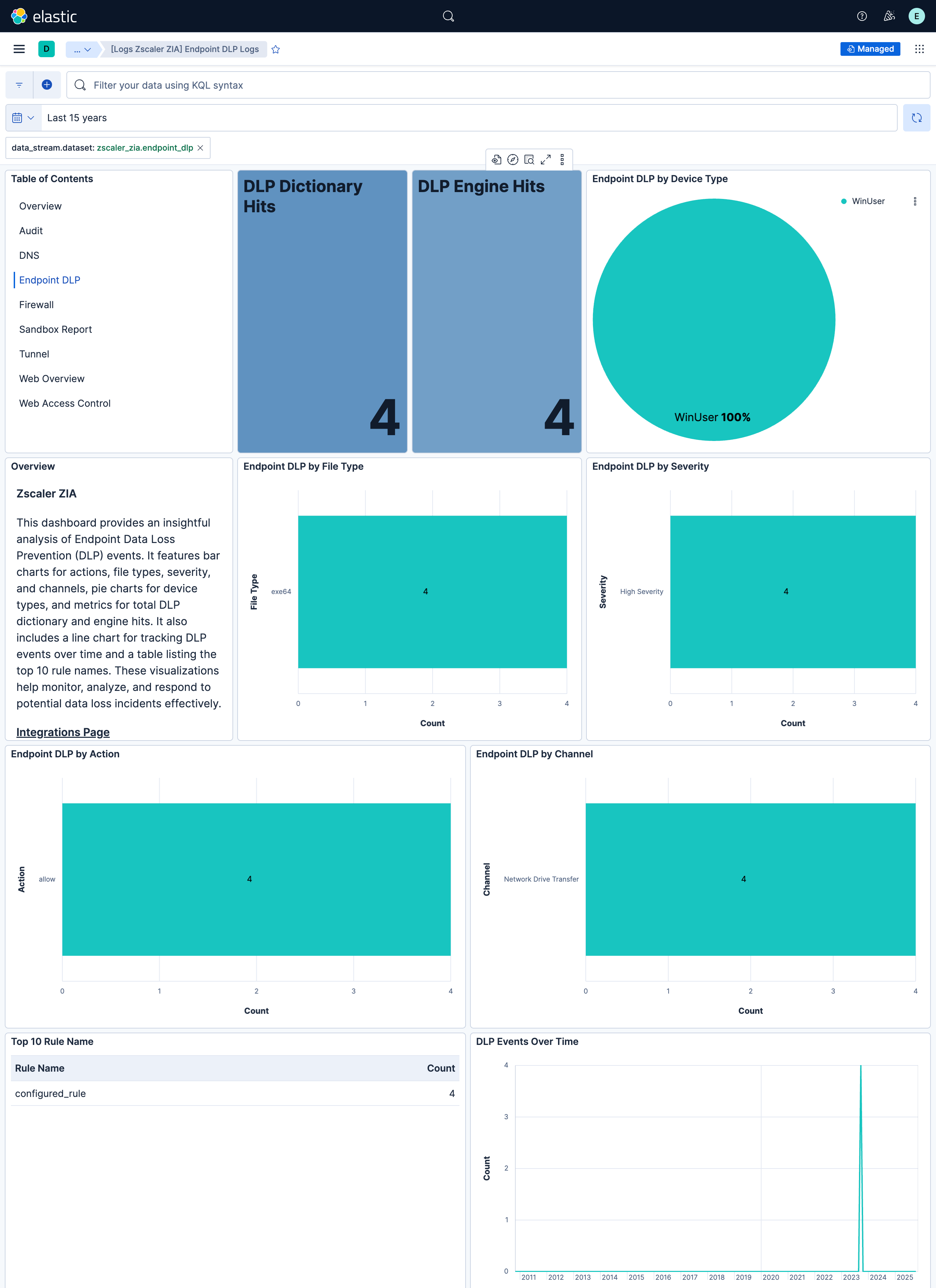 This integration includes one or more Kibana dashboards that visualizes the data collected by the integration. The screenshots below illustrate how the ingested data is displayed.
