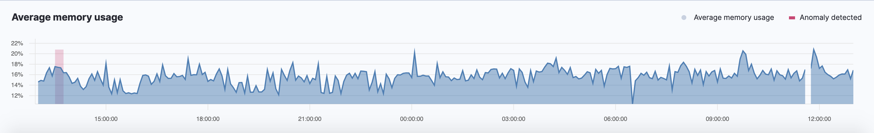 On the Infrastructure inventory page, click Show history to view the metric values within the selected time frame. Detected anomalies with an anomaly score equal to 50 or higher are highlighted in red. To examine the detected anomalies, use the Anomaly Explorer.
