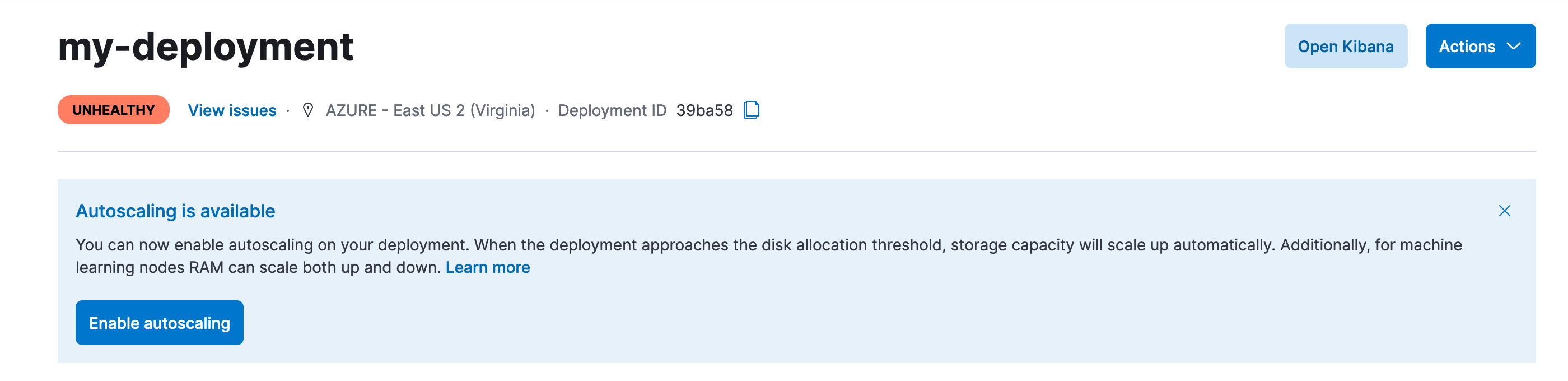 - Go to Actions > Edit deployment and check that autoscaling is enabled. Adjust the Enable Autoscaling for dropdown menu as needed and select Save.