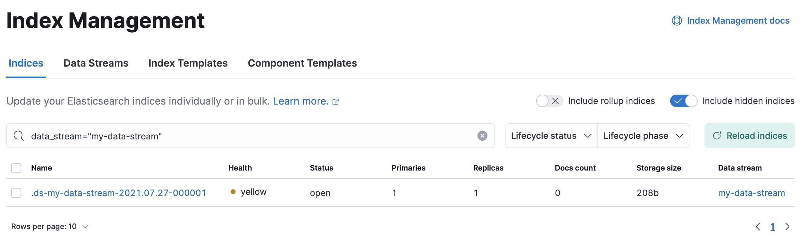 editKibana’s Index Management features are an easy, convenient way to manage your cluster’s indices, data streams, and index templates. Practicing good index management ensures your data is stored correctly and in the most cost-effective way possible.