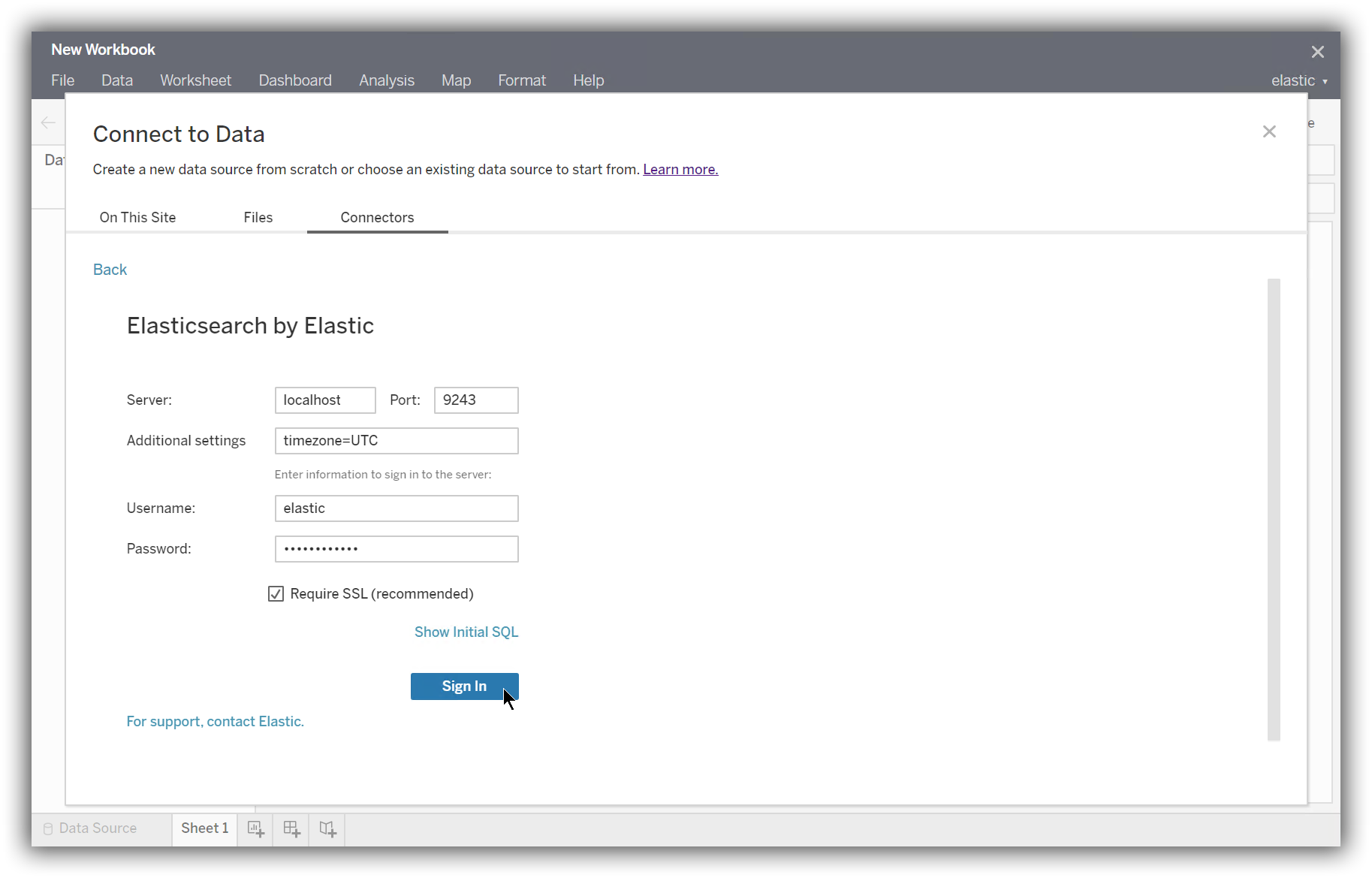 Enter the information for your Elasticsearch instance, and click Sign In.