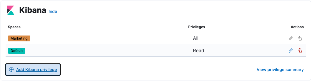 Kibana privileges