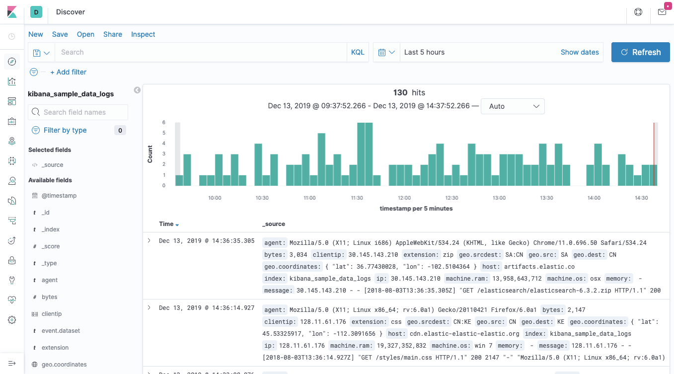- Add a sample data set and take Kibana for a test drive without loading data yourself.