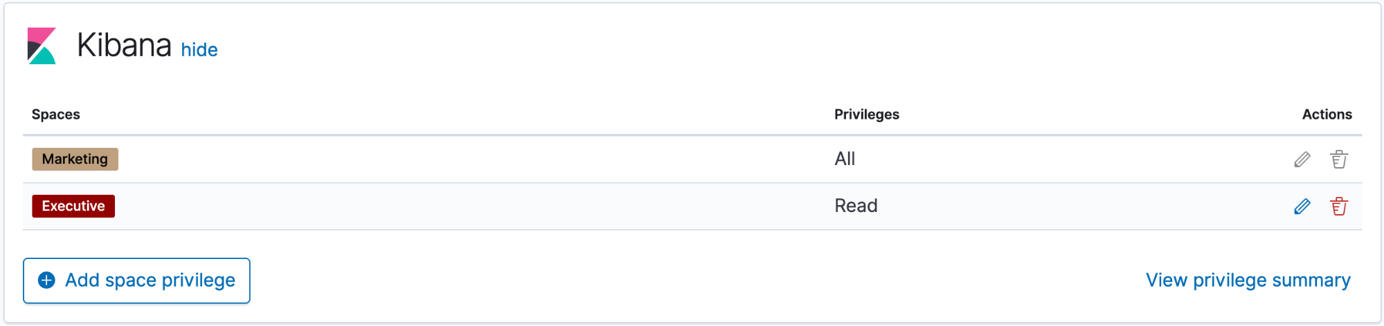 Kibana privileges