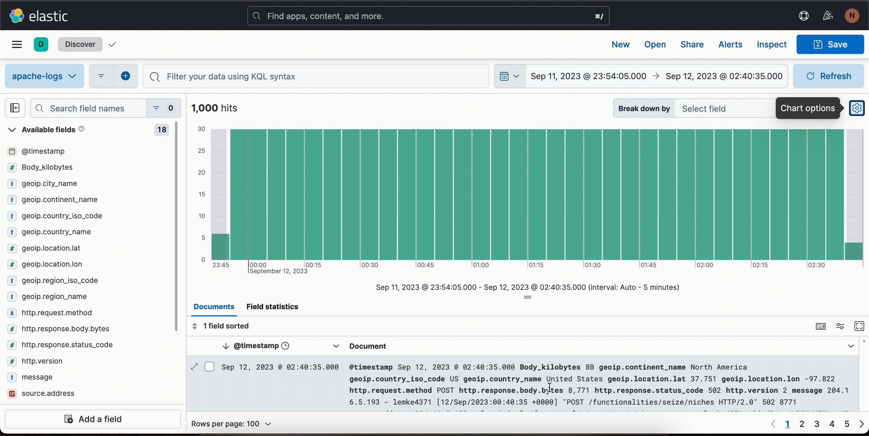 - Efficient and easy query building: ES|QL in Discover offers auto-complete and in-app documentation, making it easy to craft powerful queries right from the query bar.