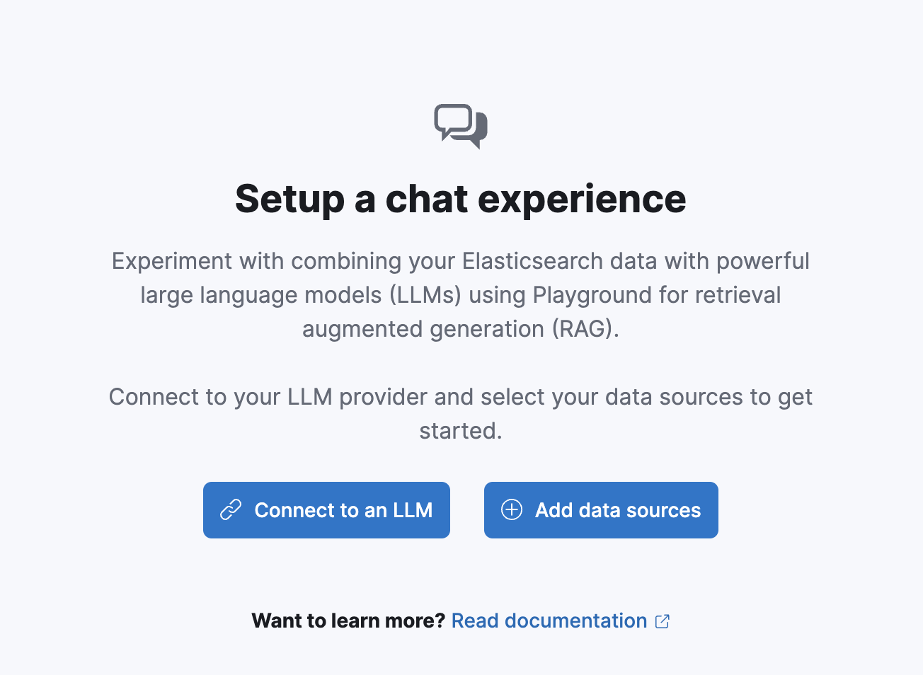 Use Playground to combine your Elasticsearch data with the power of large language models (LLMs) for retrieval augmented generation (RAG). The chat interface translates your natural language questions into Elasticsearch queries, retrieves the most relevant results from your Elasticsearch documents, and passes those documents to the LLM to generate tailored responses.