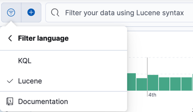 To use the Lucene syntax, open the Saved query menu, and then select Language: KQL > Lucene.