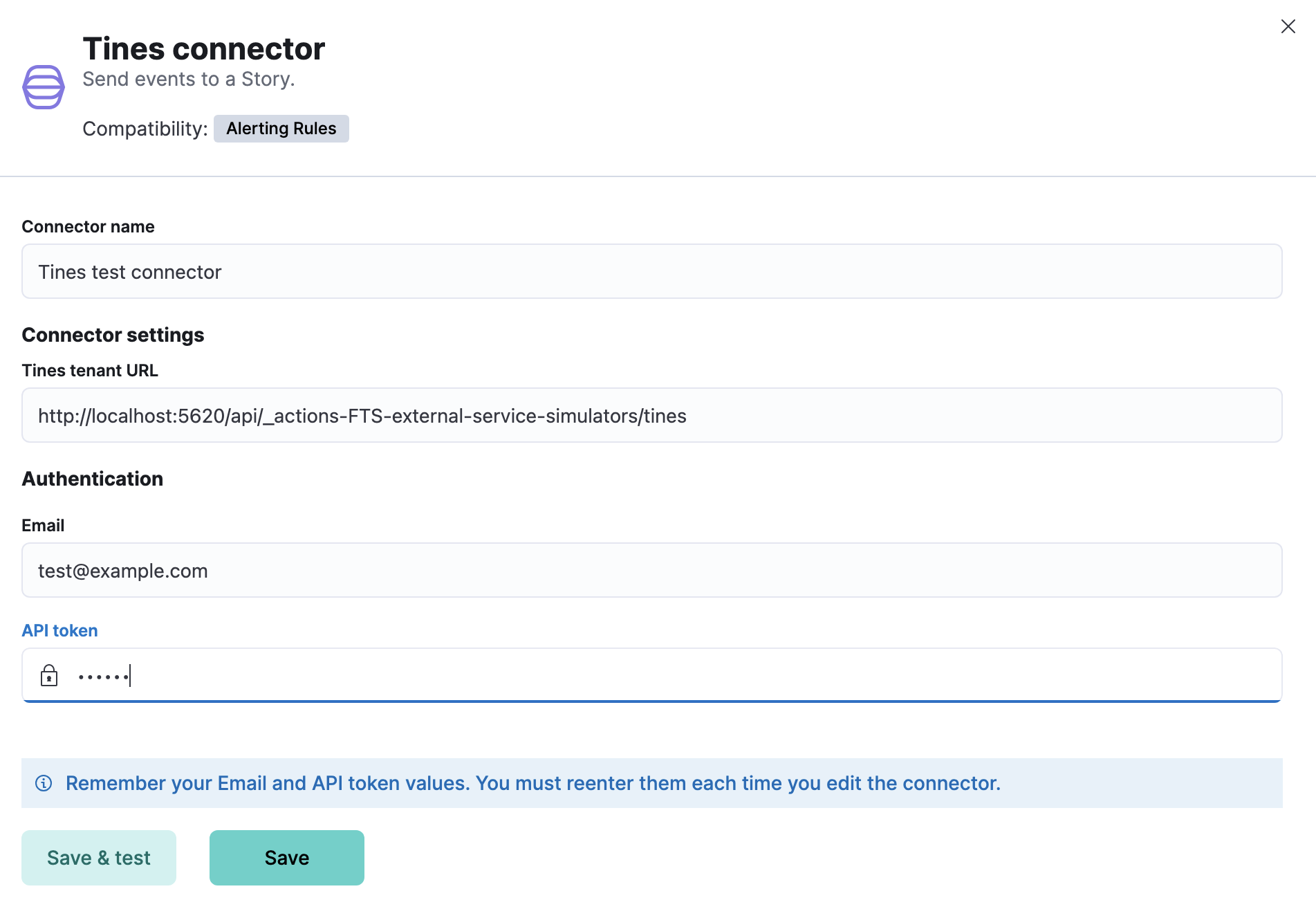 - A Tines API token created by the user. For more information, refer to the Tines documentation.