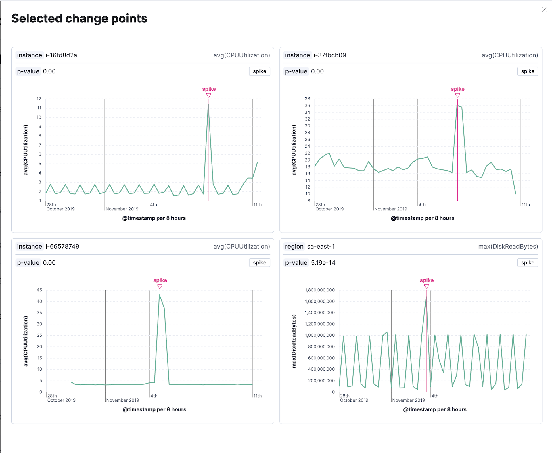 Change point detection uses the change point aggregation to detect distribution changes, trend changes, and other statistically significant change points in a metric of your time series data.