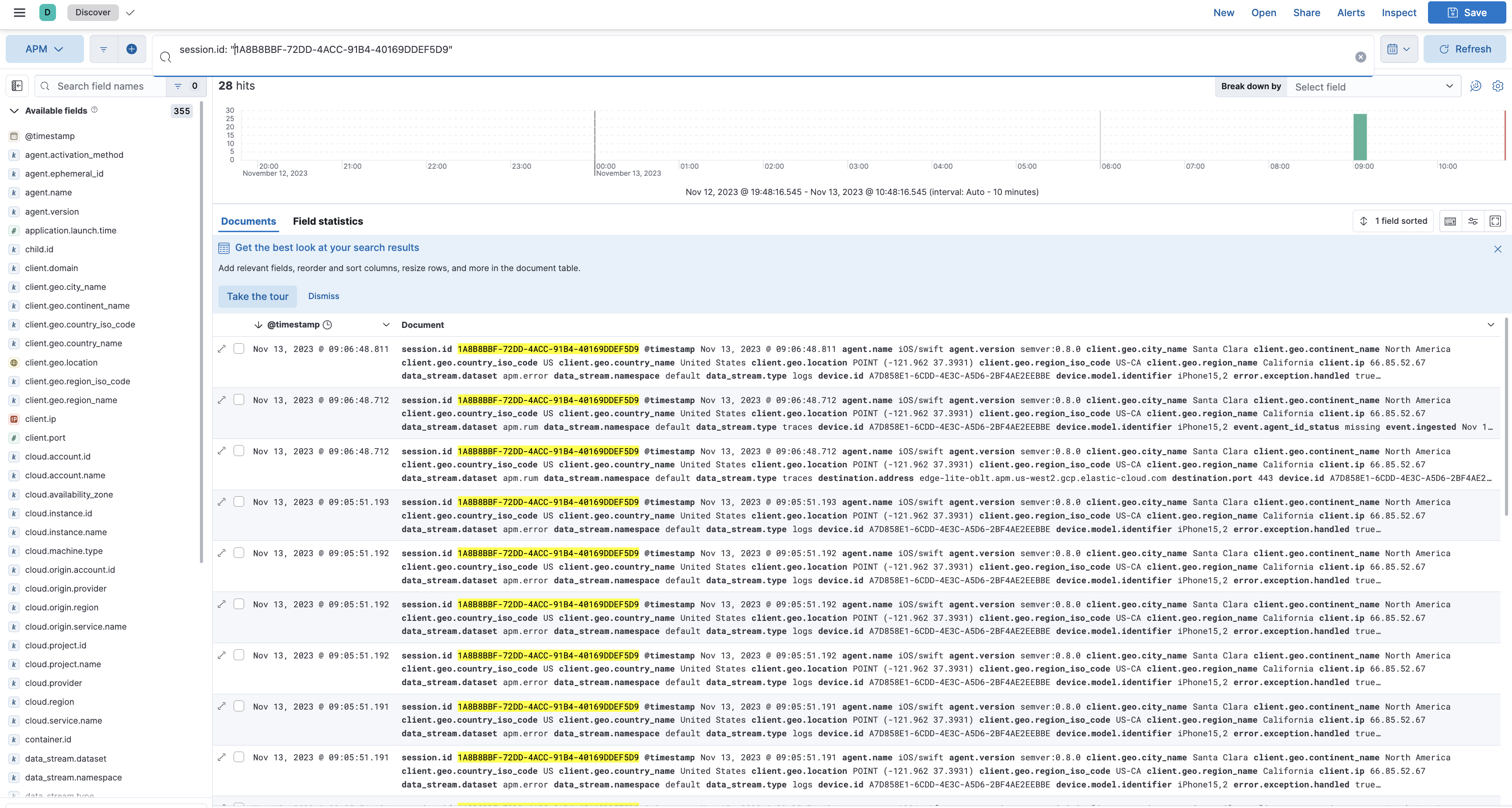 session.idfrom the relevant document. - Open the Discover page.