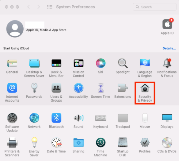 1. Click Open Security Preferences.