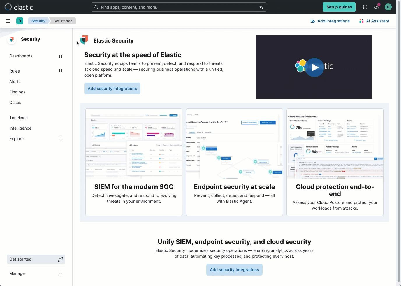 Quickly add security integrations that can ingest data and monitor your hosts.