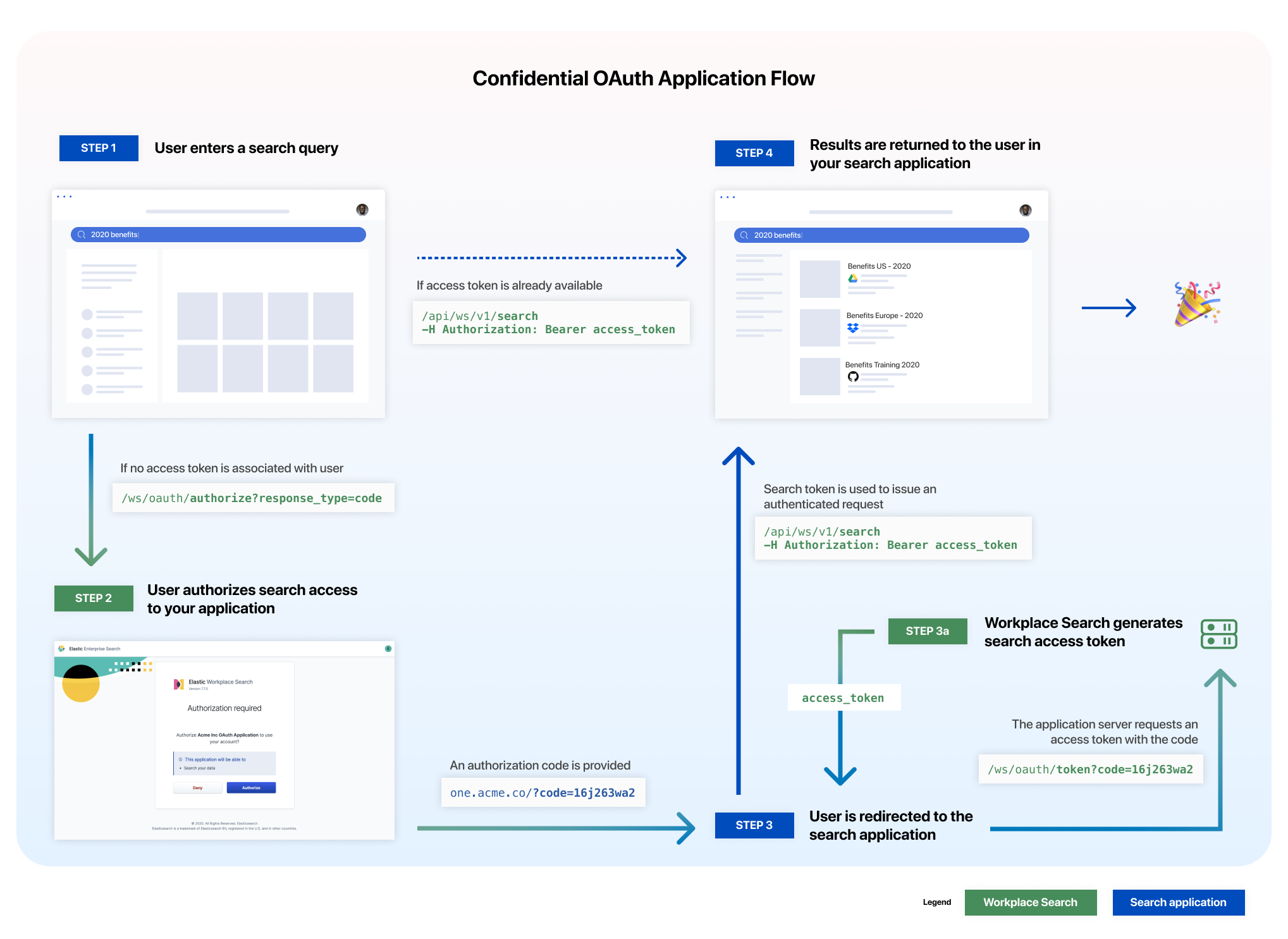 The confidential OAuth flow requires that the application server (in this case our internal knowledge platform) handles the trading of a generated authorization code and client secret in exchange for an access token.