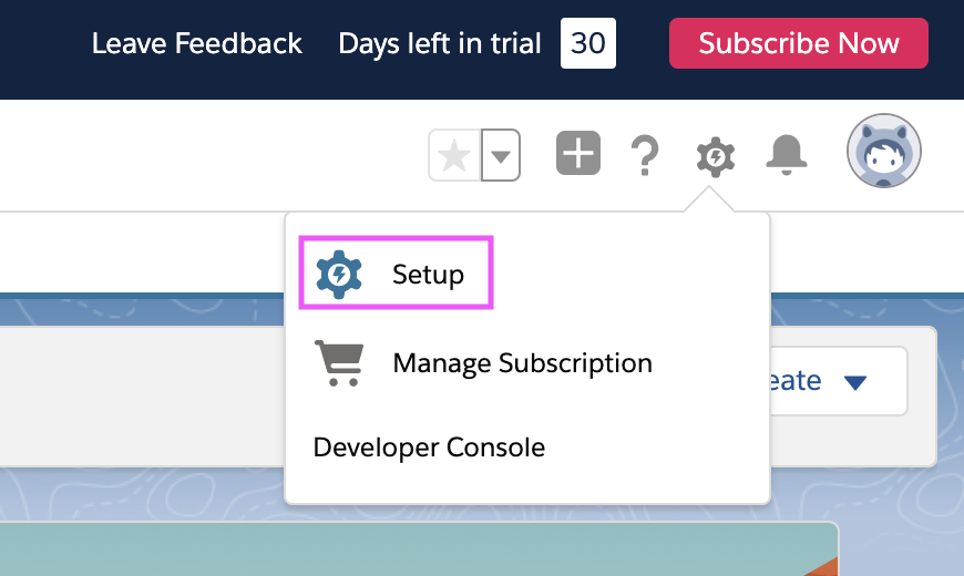 Step 1. From the Lightning experience, click Setup in the top right corner: