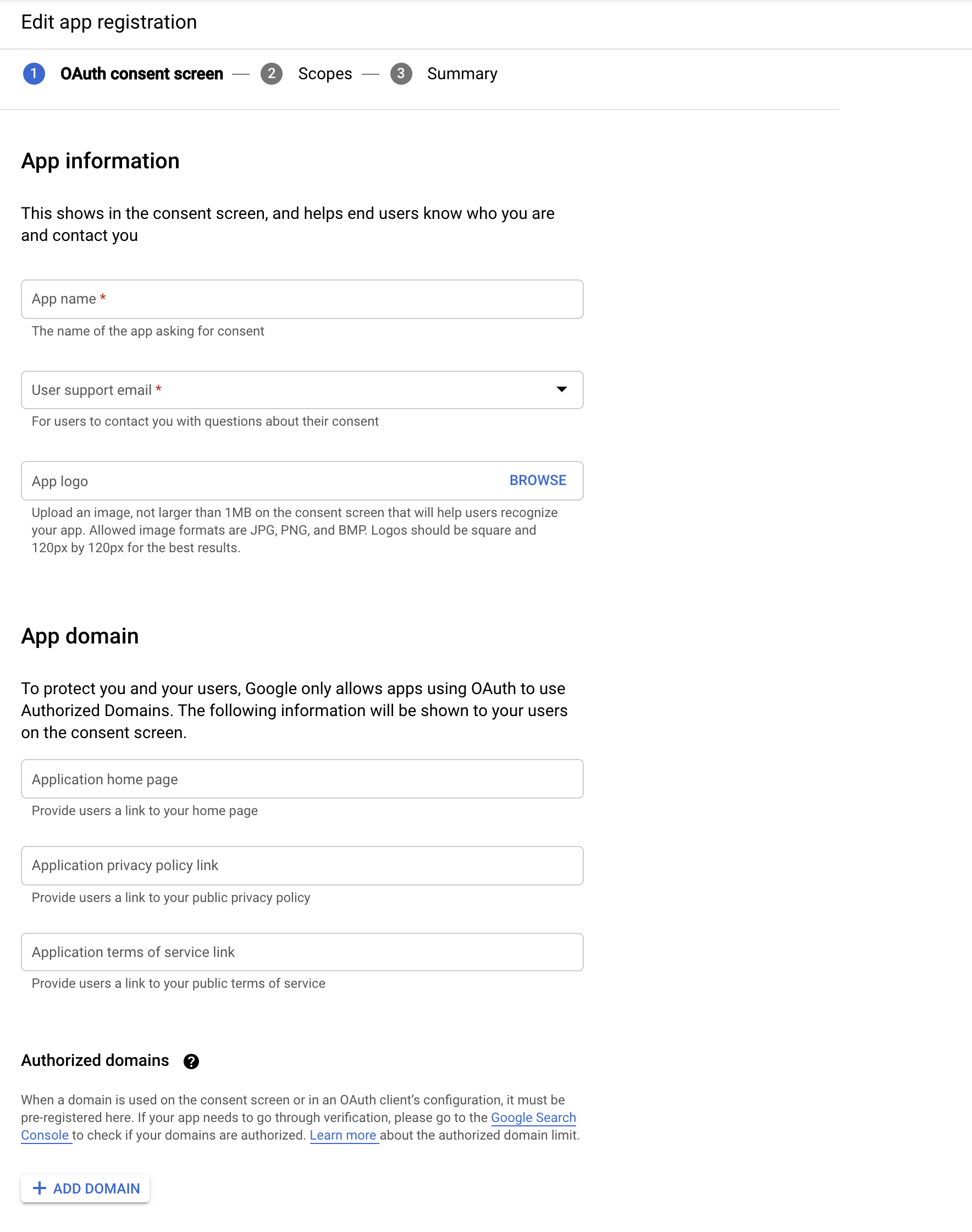 Step 9. Fill out the information in the OAuth Consent Screen form.