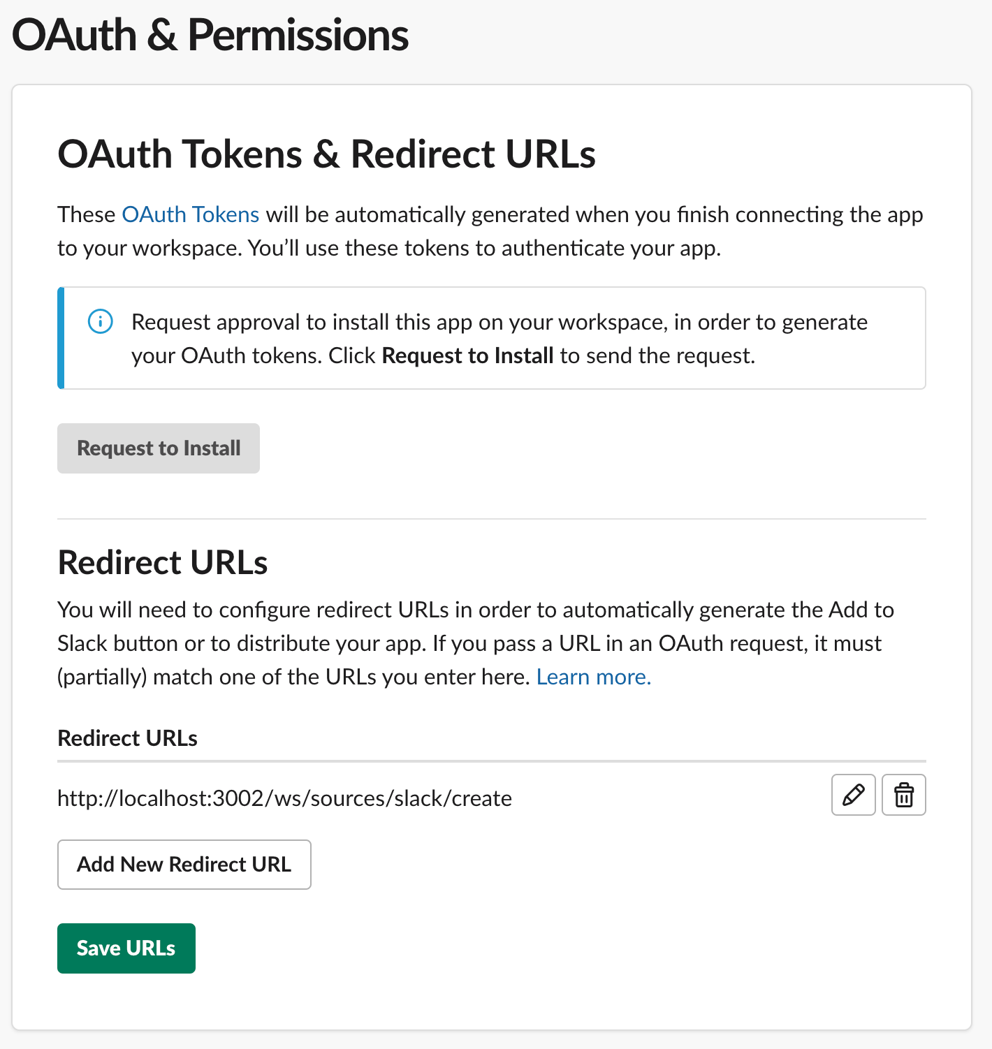 editConfiguring the Slack connector is the first step prior to connecting the Slack service to Workplace Search, and requires that you create an OAuth App from the Slack platform.