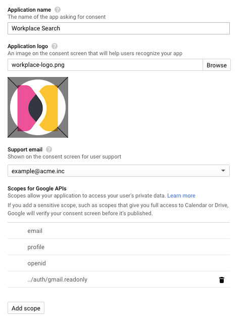 Configuring the Gmail connector is the first step prior to connecting the Gmail service to Workplace Search, and requires that you create an OAuth App from the Gmail platform.