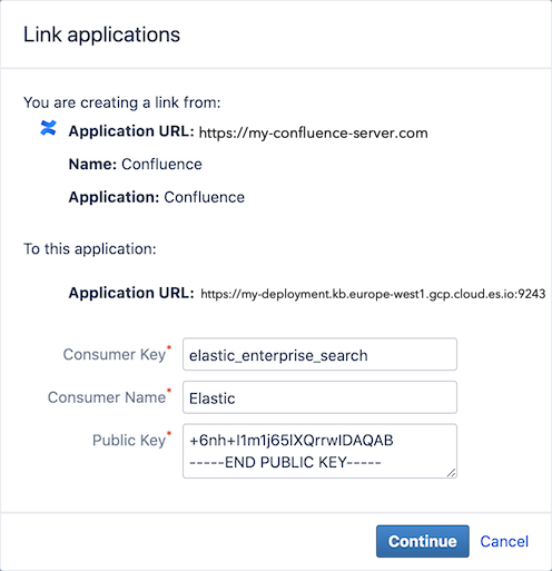 Step 1. From the Workplace Search administrative dashboard’s Sources area, locate Confluence Server and click Configure. You are presented with a Public Key and a Consumer Key. Copy these keys and keep them handy, as we’ll need them in just a second.