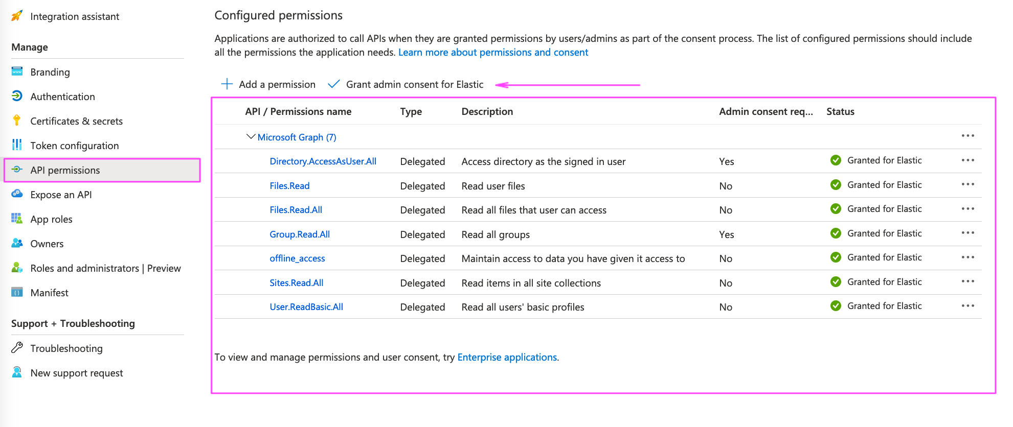 - The connecting Azure AD user must have permission to access the sites for any groups and teams that Azure AD user is able to query. Without access to these sites, the sync may fail with a 403 error.