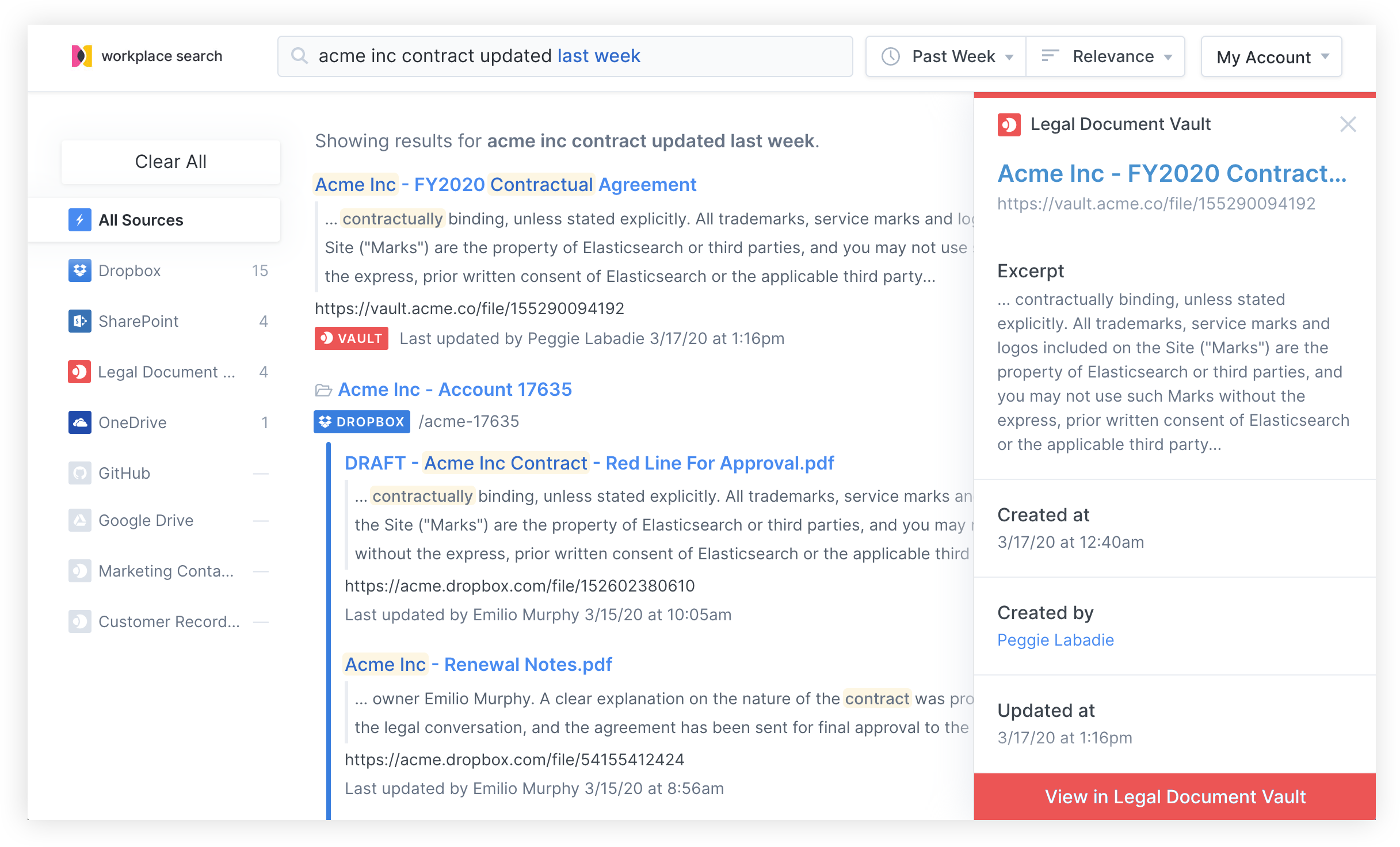 editModern search experiences are provided with Workplace Search, allowing team members and collaborators to find information and files from a feature-rich, standalone platform. It is a fast, scalable, and intuitive way to rollout search across your organization, and will continue evolving over time.