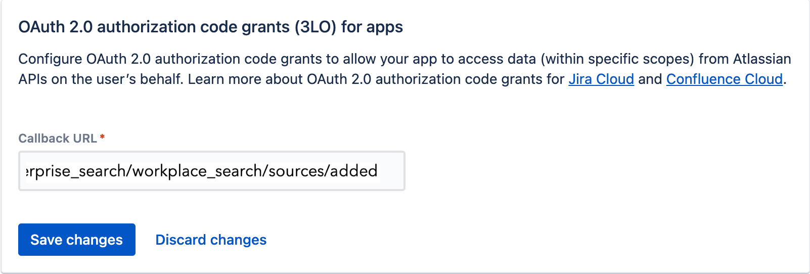 Step 6. Use the Callback URL form to enter the Workplace Search OAuth redirect URL for your deployment.