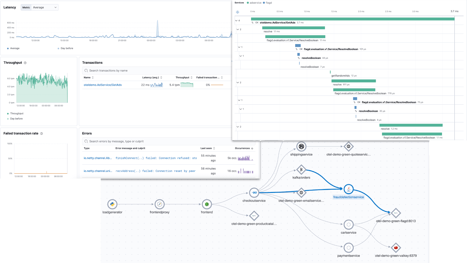 The Elastic Distribution of the OpenTelemetry Collector allows for tracing just like any other collector distribution made of upstream components. Explore and analyze the performance and runtime behavior of your applications and services through RED metric, service maps and distributed traces collected from OpenTelemetry SDKs.