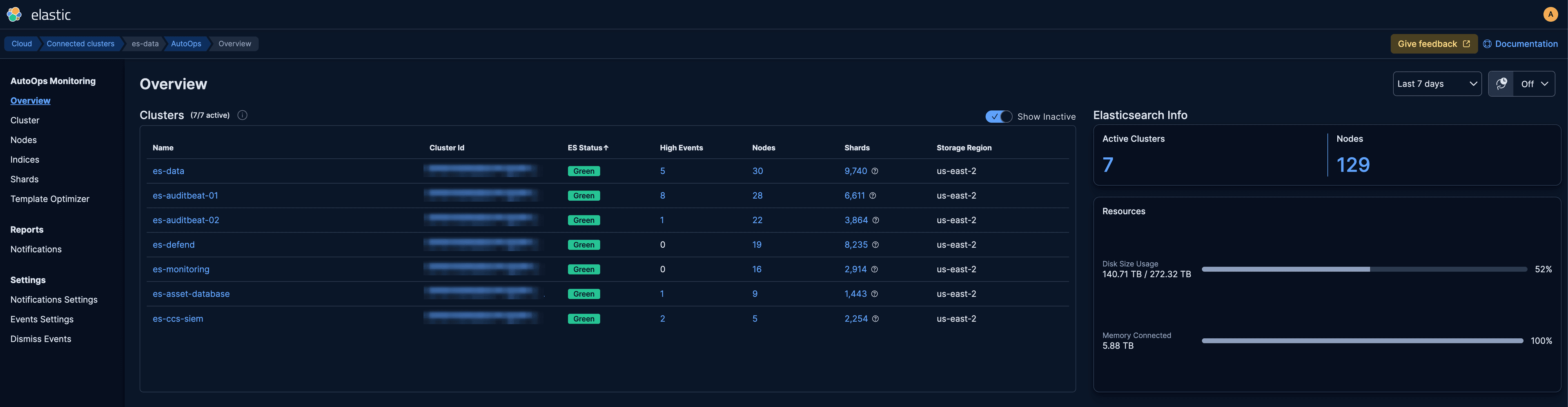 AutoOps for Elasticsearch streamlines cluster operations by providing performance recommendations, resource utilization insights, real-time issue detection, and guided remediation. With the recent announcement of AutoOps for self-managed (on‑premises) clusters, we were eager to deploy it and see how it could help us monitor and maintain the health of our large multi-cluster ECK environment.
