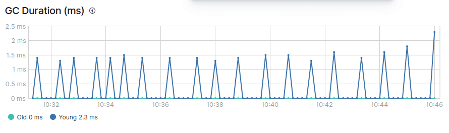 - Old GC is not frequently executed (once per 10 minutes or more).