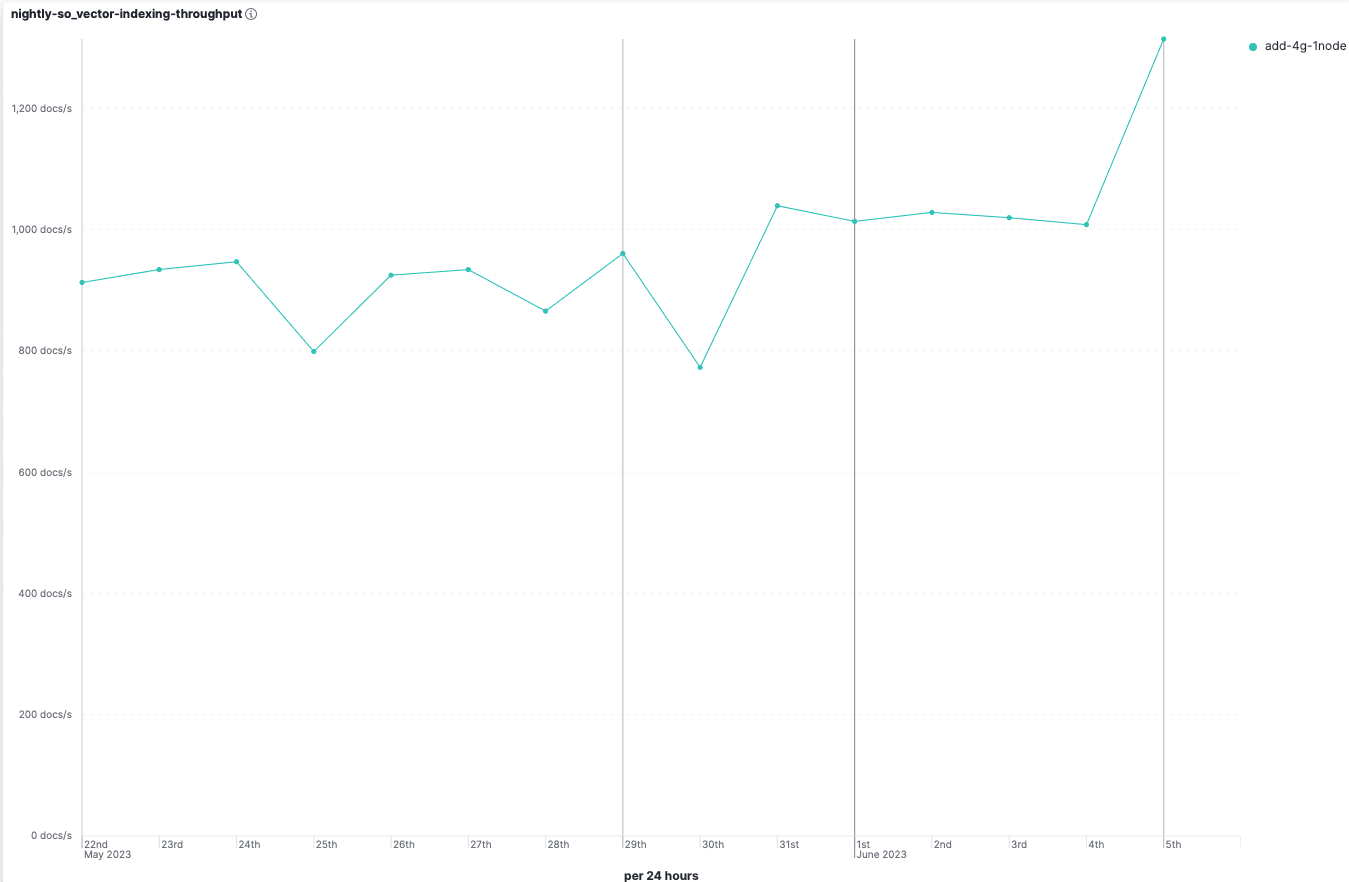 The graph shows indexing throughput increased from about 900 documents/sec to about 1300 documents/sec.