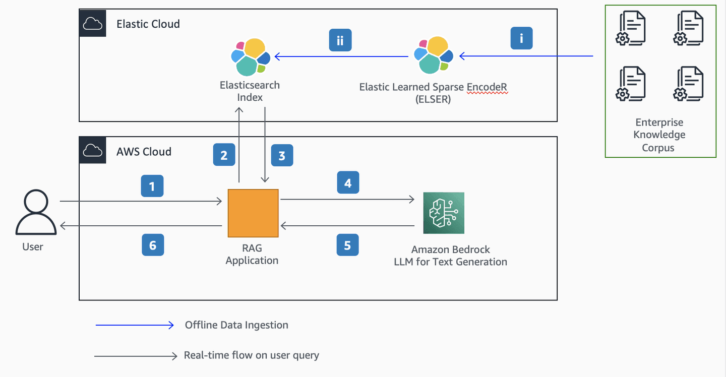 Figure 1. RAG Architecture using Elasticsearch and Amazon Bedrock