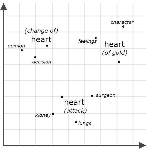 Superficially, they look very similar, but a multivector model would likely generate very different embeddings for each instance of “heart,” representing how each means something else in the context of the whole sentence: