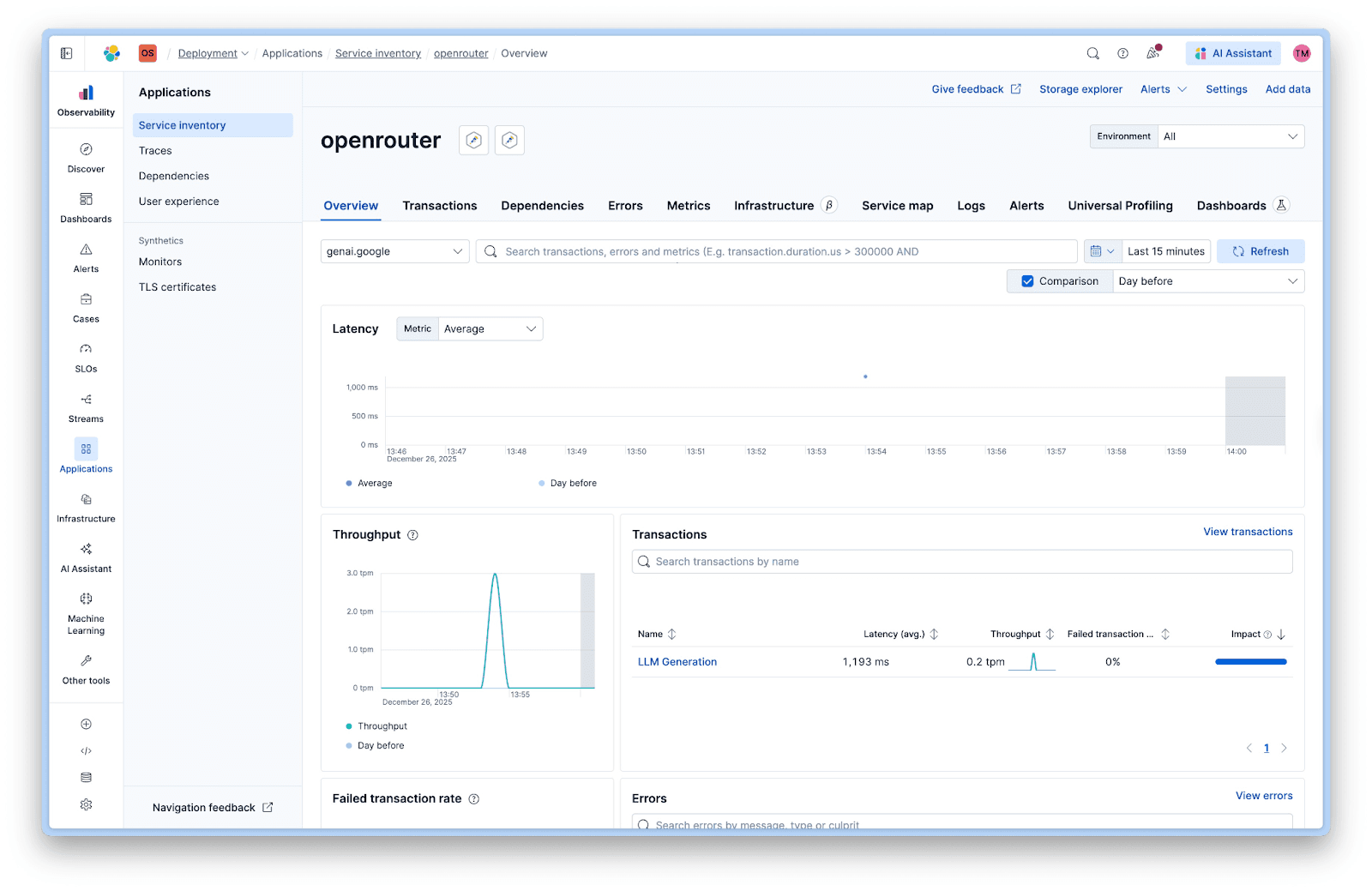 From now on, the activity of the inference pipeline and Agent Builder in relation to LLM usage will be recorded in OpenRouter and sent to Elastic.