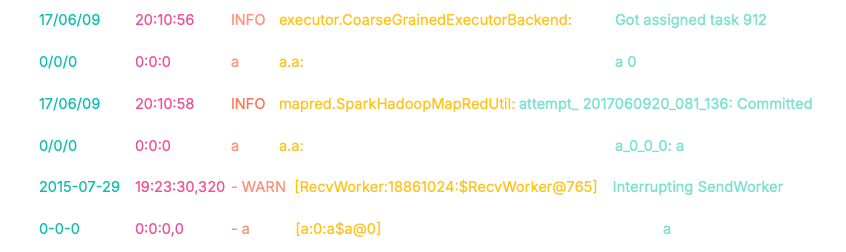 请注意前两个日志的指纹。尽管时间戳、来源类名和消息内容不同,但它们的前缀(0/0/0 0:0:0 a a.a:)完全一致。这种结构上的一致性使我们能够自动将这些日志归入同一个聚类。这种结构上的一致性使我们能自动把这些日志分桶到同一个聚类中。