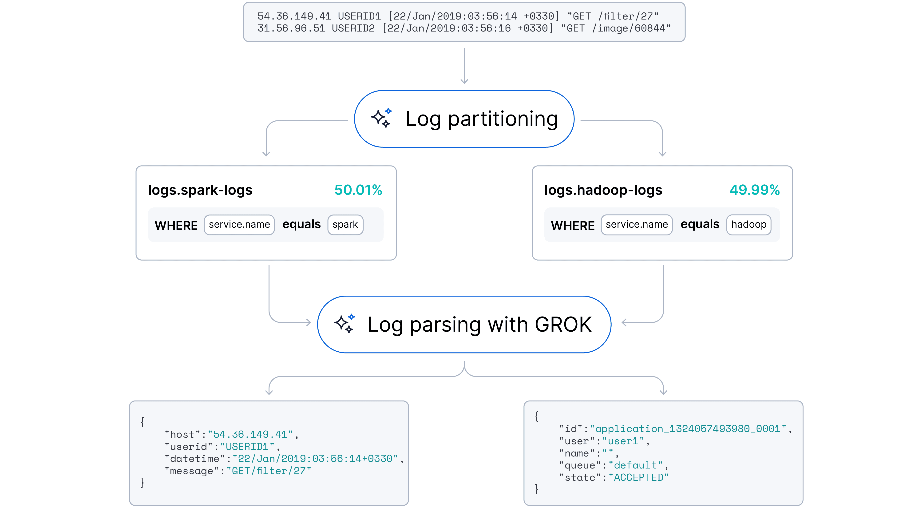 idvs.service.idvs.device.id)。我们使用标准化的 Elastic 字段命名规范对名称进行了统一。 - 解析粒度差异:字段提取的粒度因输入日志之间的相似程度而异。