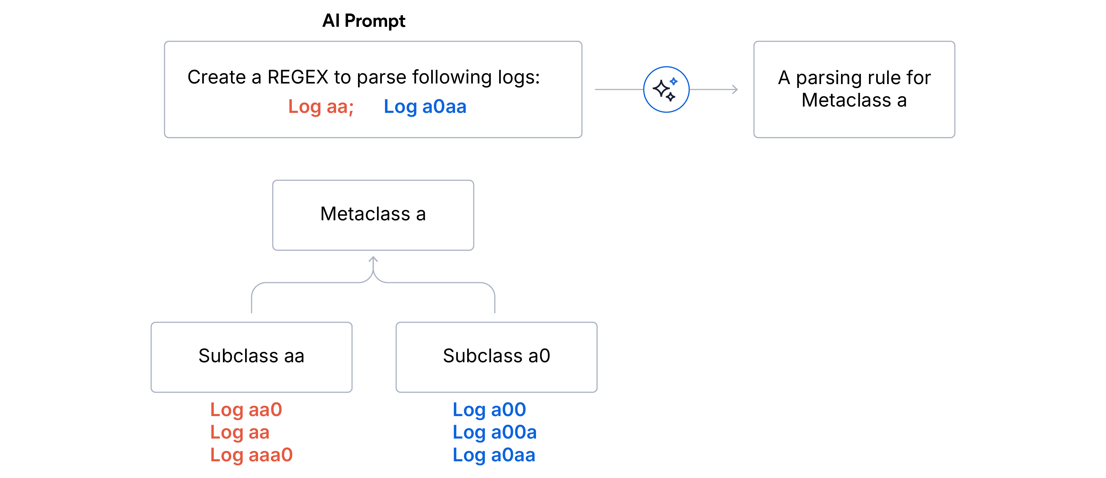 3. 规则生成:最后,我们提示 LLM 为每个元类生成一个适用于所提供样本中所有日志的正则表达式解析规则。在概念验证中,我们使用了 GPT-4o mini 模型。