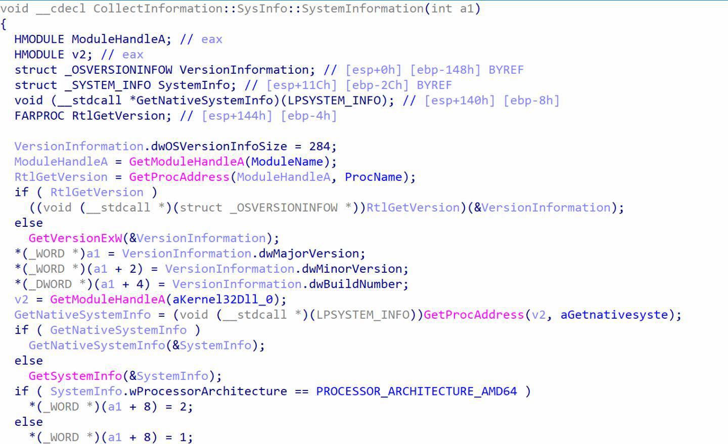 The malware collects host-based information used to fingerprint the infected system, this information will be stored in a custom structure that will be 2-byte XOR encrypted and sent to the C2 server in an HTTP POST request.