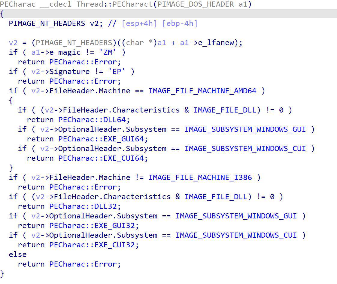The agent first parses the PE file received from the C2 server to determine the type and architecture of the PE file.