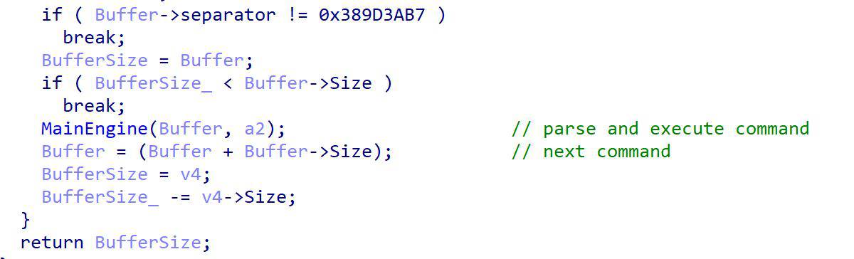 - Separator: A static value ( 0x389D3AB7 ) that separates Msg chunks, example: the server can send different instructions in the same HTTP request separated by the Separator